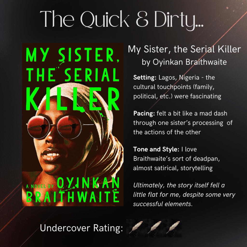 Keep reading for my full review of “My Sister, the Serial Killer” with The Quick & Dirty version at the end!